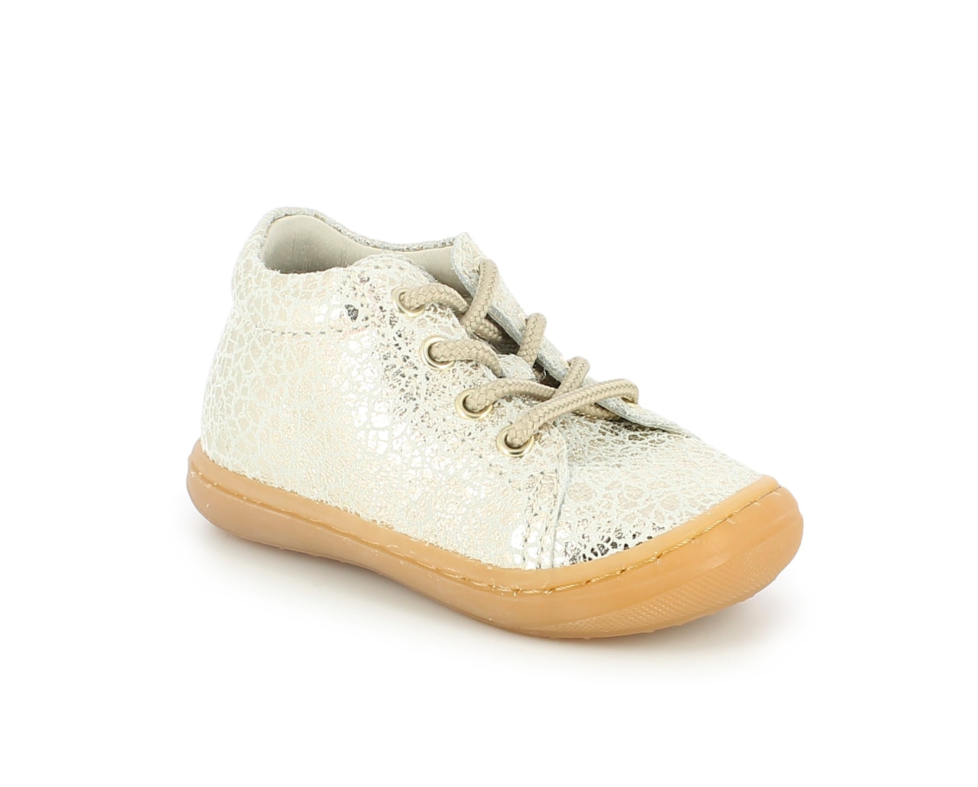 Chaussures hautes Bottillons Premiers pas gamme flex Couleur Fantaisie Or marque BELLAMY modèle Princesse Chaussant fin Fermeture Lacets Voici une marque française qui s'inscrit dans la démarche du made in France! Des chaussants exclusifs dits évolutifs pour faire durer la pointure et des chaussons dont la qualité n'est plus à prouver…Essayer c'est approuvé