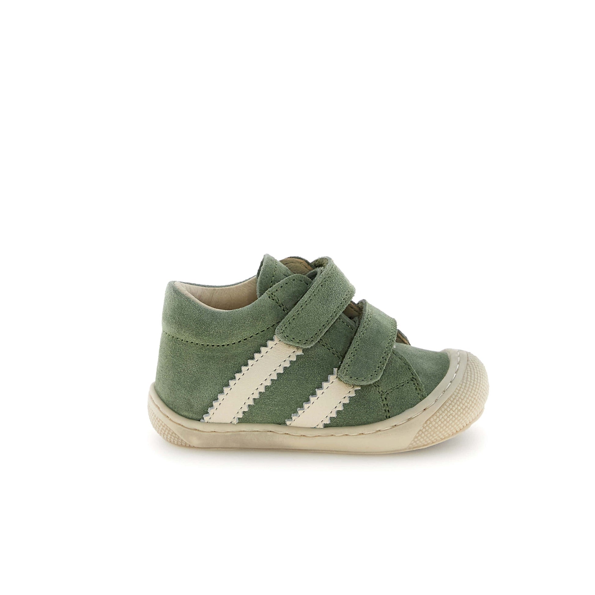 Chaussure pré marche bottillons premiers pas Couleur Leaf Milk Chaussant normal Fermeture Velcro Naturino Chaussure premiers pas en cuir avec semelle en caoutchouc léger et souple et la pointe renforcée. De délicieux cœurs brodés sur du doré